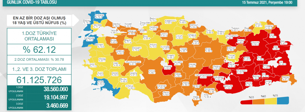 15 TEMMUZ KORONAVİRÜS TABLOSU