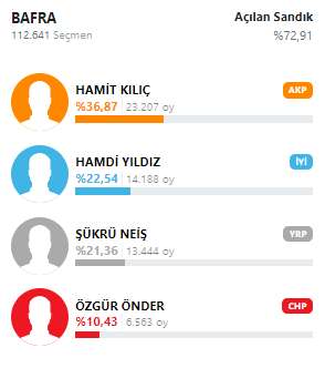 İşte Bafra Belediyesi başkan adaylarının aldıkları oy oranları: