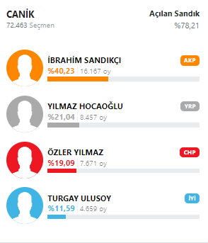 İşte Canik Belediyesi başkan adaylarının aldıkları oy oranları: