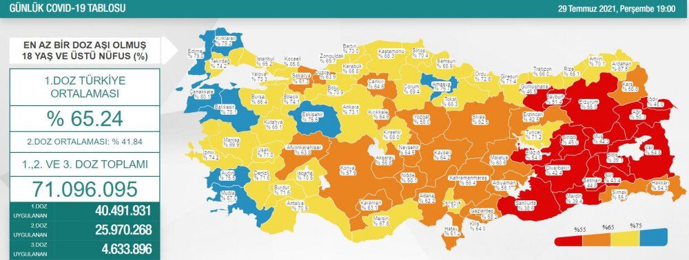 29 TEMMUZ KORONAVİRÜS TABLOSU