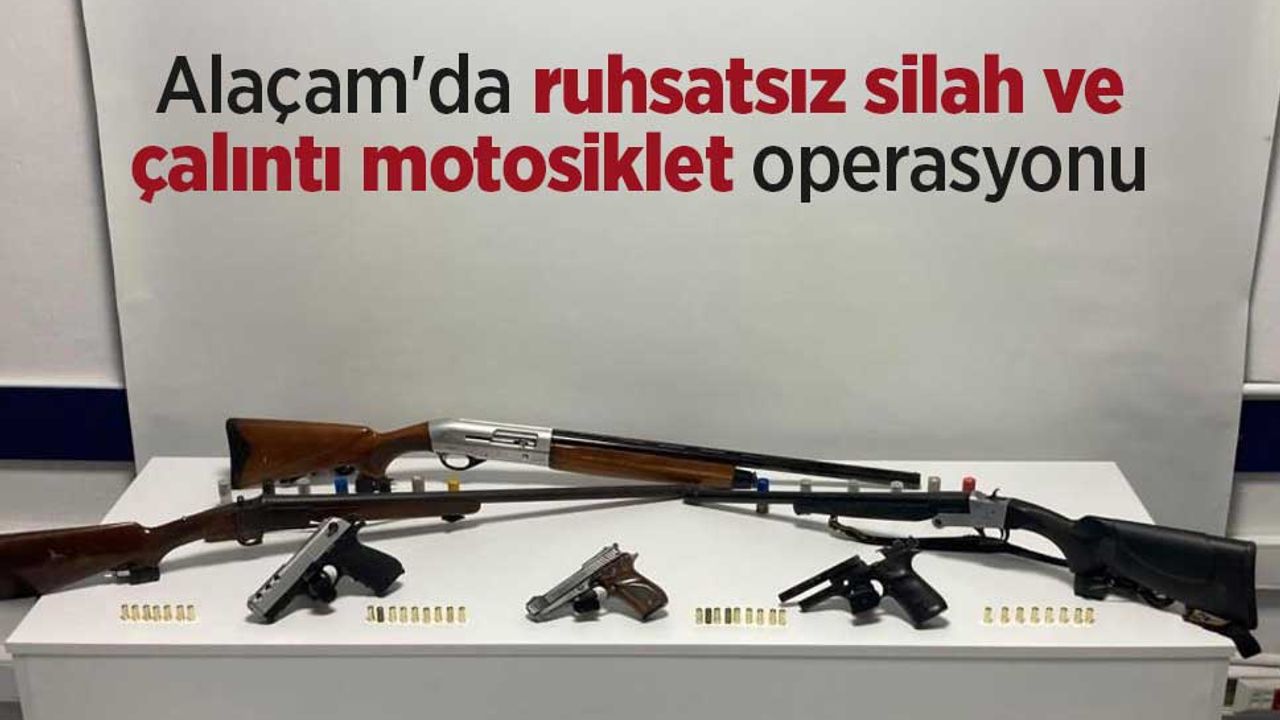 Alaçam İlçe Emniyet Müdürlüğü ekipleri, yasa dışı silahlanma ve hırsızlık olaylarının önlenmesine yönelik yürütülen çalışmalar kapsamında iki ayrı adrese operasyon düzenledi. Ş.D. (43) isimli şahsın ikametinde yapılan aramalarda 1 adet ruhsatsız tabanca, 1 adet çalıntı motosiklet, 2 adet kurusıkı tabanca, 2 adet ruhsatsız av tüfeği, 3 adet 6136 SKM kapsamında bıçak, 2 adet amaç dışı bıçak, 33 adet kurusıkı mermisi ve 38 adet av tüfeği fişeği ele geçirildi. Ayrıca yapılan çalışmada D.İ. (63) isimli şahıstan da 1 adet ruhsatsız av tüfeği ele geçirildi.