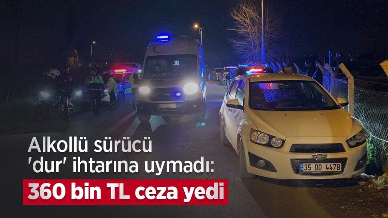 Yapılan kontrolde sürücünün 0.93 promil alkollü olduğu belirlendi. Sürücüye, dur ihtarına uymamaktan 200 bin TL, tehlikeli şerit değiştirmekten (makas atma) 90 bin TL, kırmızı ışık ihlalinden 5 bin TL, ehliyetsiz araç kullanmaktan 40 bin TL ve alkollü araç kullanmaktan 25 bin TL olmak üzere toplam 360 bin TL idari para cezası uygulandı.