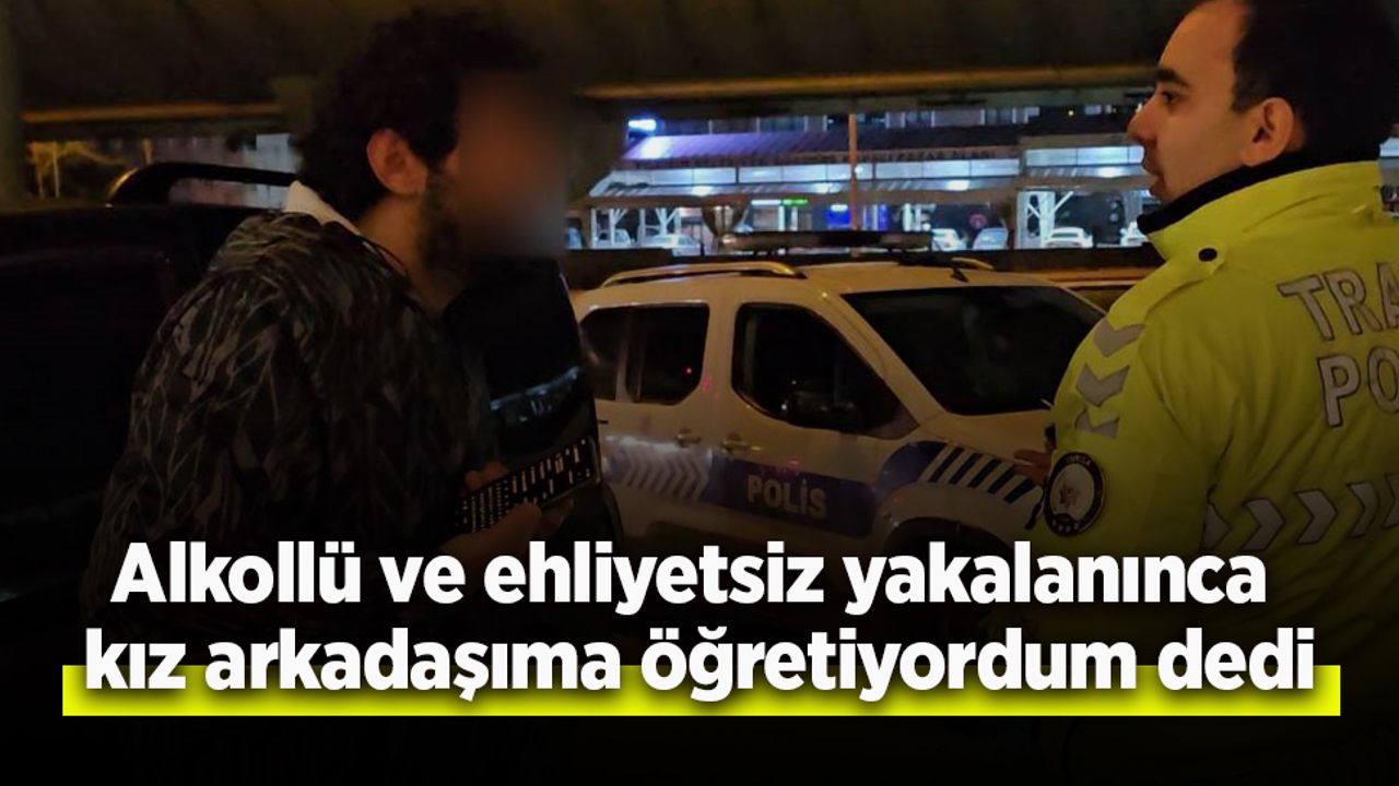 Bursa'da bir sürücü polis ekiplerinin denetim yaptığını görünce aracı park edip kaçmaya çalıştı. Polisin dikkati sayesinde yakalanan sürücü, yapılan kontrolde 1.12 promil alkollü ve ehliyetsiz çıkınca, "Beni araç kullanırken gördünüz mü? kız arkadaşıma öğretiyorum o kullanıyordu" diyerek kendini savundu.