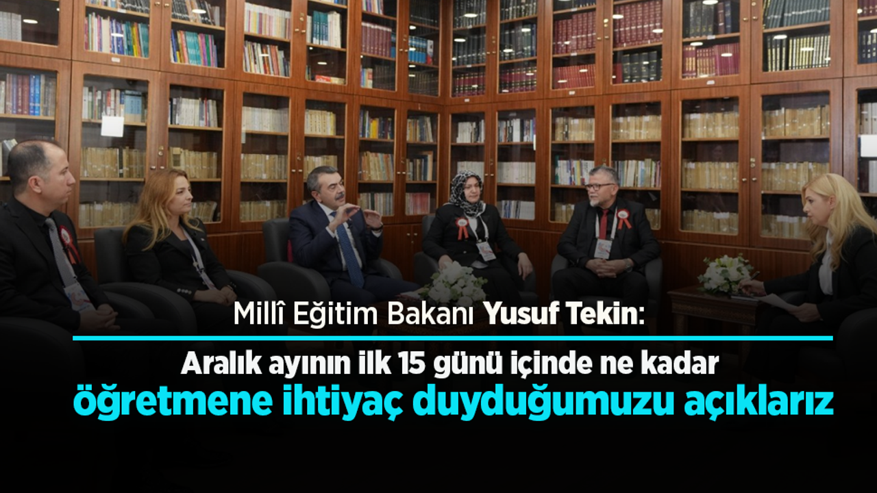 Bugün 15 bin öğretmen atamasının yapıldığını, bu atamanın ardından tablonun güncelleneceğini bildiren Tekin, "Norm hesabı yeniden güncellenecek ve aralık ayının ilk 15 günü içinde biz bu yeni hesaplamalara göre hangi branştan ne kadar öğretmene ihtiyaç duyduğumuzu açıklarız." dedi.