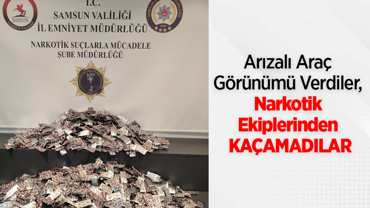 Takibin ardından oto kurtarıcı, polis ekiplerince, üzerinde taşınan araçla birlikte İlkadım ilçesinde durdurularak detaylı arama yapıldı. Yapılan aramada, arızalı görüntüsü verilerek oto kurtarıcıyla taşınan aracın bagaj bölümüne gizlenmiş halde 28.000 adet uyuşturucu hap ele geçirildi. Ele geçirilen uyuşturucu maddelere el konuldu.