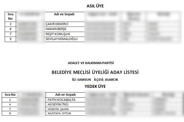 Cumhur İttifakı'nın Asarcık'da çıkardığı meclis üyeliği listesi açıklandı. Açıklanan liste şu şekilde: