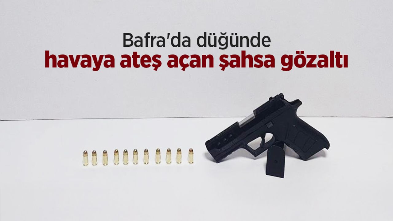 Samsun’un Bafra ilçesinde sokak düğününde havaya ateş edilmesi üzerine polis ekipleri alarma geçti. İhbar sonrası olay yerine giden ekipler, yaptıkları araştırmada M.M.Ş. (32) isimli şahsın üzerinde 1 adet ruhsatsız tabanca ve 11 adet 7.65 mm fişek ele geçirdi.