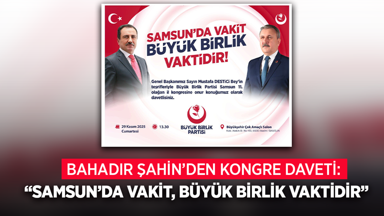 “Değerli hemşehrilerim, kıymetli dava ve yol arkadaşlarım; Büyük Birlik Partisi olarak milletimize hizmet yolculuğumuzda önemli bir döneme daha hep birlikte adım atıyoruz. Birlik ve beraberlik ruhumuzu güçlendirecek, davamıza yeni bir heyecan katacak olan Büyük Birlik Partisi Samsun 11. Olağan İl Kongresi, Genel Başkanımızın teşrifleriyle şehrimizde gerçekleştirilecektir.