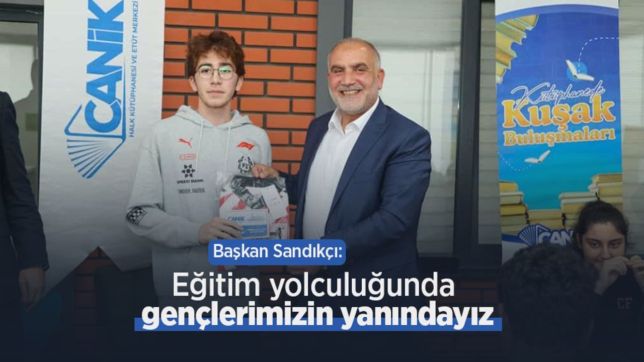 Programda öğrencilerle gerçekleştirdiği söyleşide, öğrencilere sağladıkları desteklere değinen Başkan İbrahim Sandıkçı, "Canik'te kaliteli ve nitelikli eğitim seferberliğimizi sürdürüyoruz. Canik Akıl ve Zekâ Oyunları Sınıflarımızla öğrencilerimizin bilişsel gelişimine katkılar sunuyor, sınıf düzeyine göre özel müfredat eşliğinde gençlerimizi yapay zekâ, yazılım, robotik kodlama, model uçak tasarımı ve siber güvenlik eğitimleriyle buluşturuyoruz. KPSS adaylarımıza yönelik ücretsiz eğitim programları düzenlerken, gençlerimizin KPSS, YKS ve LGS ücretlerinin tamamını karşılıyoruz. Şuna yürekten inanıyoruz ki, yarınlarımıza güç katacak ve geleceğe yön verecek olanlar, bilgilerine her gün yenilerini ekleyen, yeteneklerinin farkında olan erdem sahibi nesillerimiz olacaktır" şeklinde konuştu.