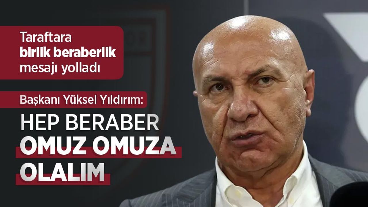 Sizden ricam; kırgınlıkları stadın kapısında bırakın. Biz içeride, siz dışarıda değil; hep beraber omuz omuza olalım. Biz nasıl önceleri güçlü bir aile idiysek şimdi de tekrar çok daha güçlü bir aile olduğumuzda önümüzde hiç kimseler duramaz. Bu şehri ve bu şanlı armayı layık olduğu yere hep birlikte taşıyacağız. Birlikte başaracağız. Biz bize yeteriz.