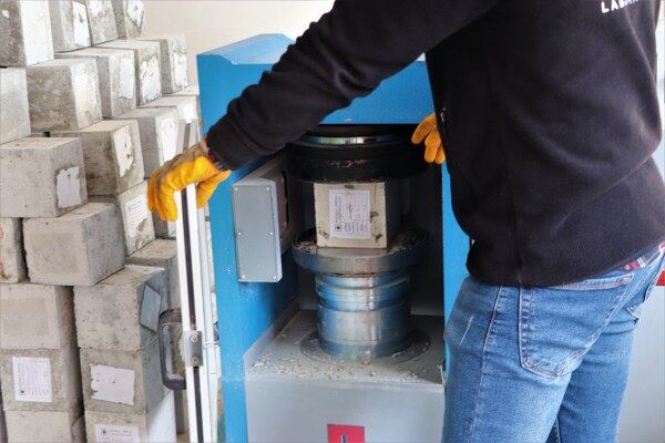 Kürleme hakkında bilgi veren Kaya, "Kür havuzu, 28 günlük betonların 18 ve 22 derece ısı sıcaklığında kürlemesini sağlamaktadır. Bu kürlemenin ısı sıcaklığı gibi takipleri, ASELSAN'ın sisteminden Çevre, Şehircilik ve İklim Değişikliği Bakanlığı'na aktarılmaktadır. Bu numune beton küplerinin içerisinde çipler olduğundan dolayı şu an kürlemede midir, kırılma günü gelmiş midir gibi soruları bakanlığın vermiş olduğu sistem içerisinden yürütebiliyoruz. Otomatik preste direkt start veriyoruz ve kırmaya başlıyoruz" diye konuştu.