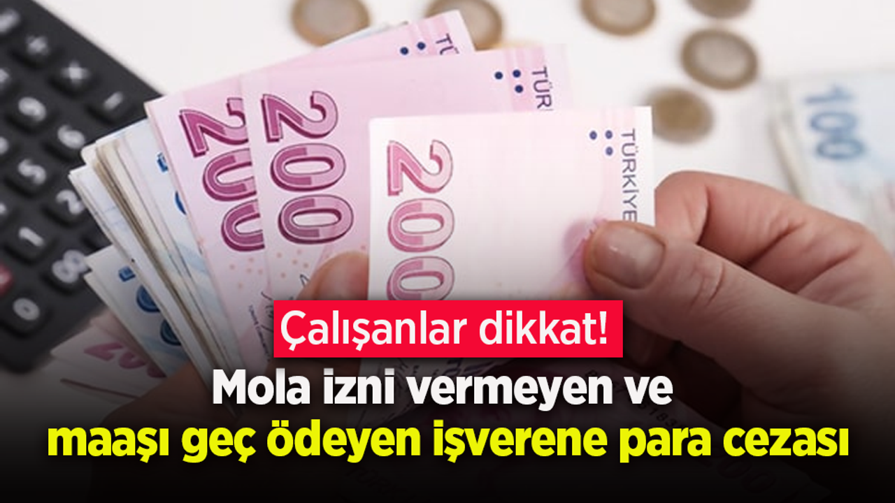 Ücreti geç ödeyen, molaya izin vermeyen patronlara para cezası var. İş Kanununa aykırı davranan işverenlere uygulanan para cezaları her yıl yeniden artırılıyor. Vatandaşın cebini etkileyen vergi ve harçlarda yeniden değerleme oranı yüzde 18,95 olarak belirlenmekle birlikte İş Kanunu kapsamındaki idari para cezaları yüzde 25,49 oranında arttı