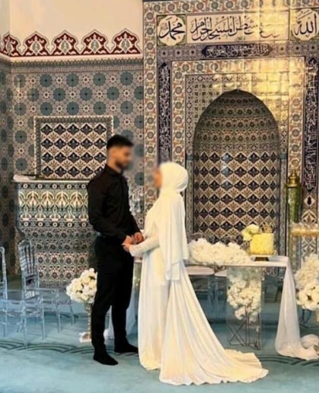 Paylaşılan fotoğraflarda 14 Aralık 2022 tarihinde yapıldığı anlaşılan törenin görüntülerinde dini nikahlarını camide kıyan çift, pasta kesti. Nikah törenine katılan davetliler için küçük hediyeler hazırlandığı ve özel sipariş edilen pastanın camiye getirildiği görüldü.