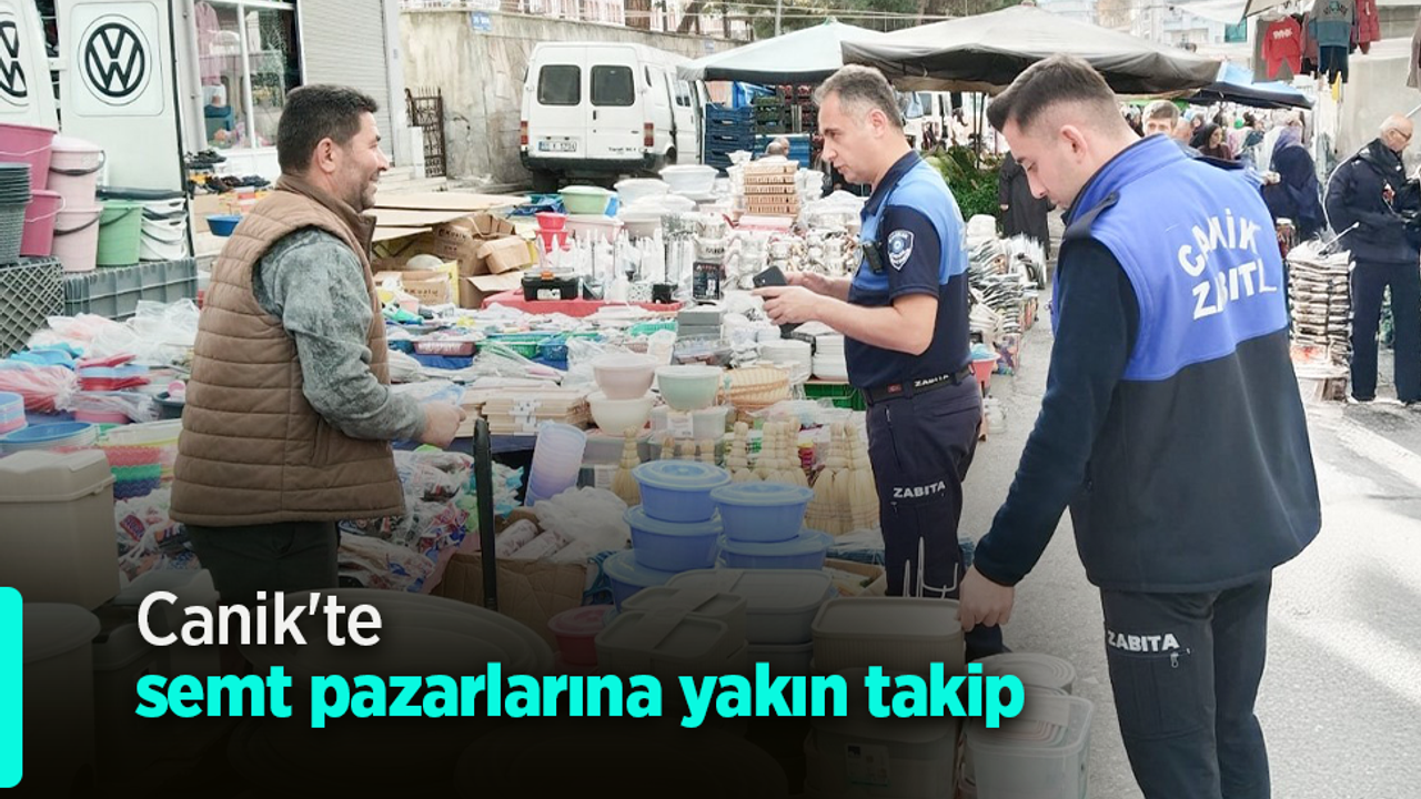 İlçede kurulan semt pazarlarında uygunsuz satışa göz açtırmayan Canik Belediyesi Zabıta Müdürlüğü ekipleri, vatandaşların güvenli bir şekilde pazar alışverişlerini gerçekleştirebilmeleri adına denetimlerine yoğun bir şekilde devam ediyor. Semt pazarlarında kurulan tezgâhları dikkatle denetleyen Canik Zabıtası, ürün satışlarının uygunluğuna yönelik esnaflara uyarılarda ve hatırlatmalarda bulunuyor. Canik Belediyesi Mobil Zabıta Çözüm Merkezi'yle de semt pazarlarında vatandaşların taleplerini ve önerilerini dinleyen zabıta ekipleri, ayrıca vatandaşların dilekçe işlemlerini gerçekleştiriyor.