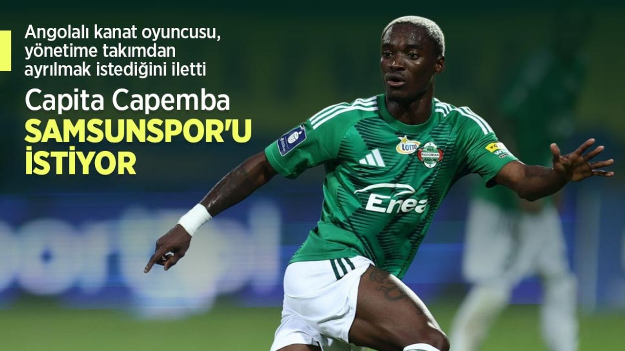 Angolalı kanat oyuncusu Capita Capemba, Samsunspor'a gitmek istediğini Radomiak yönetimine bildirdi. Kırmızı beyazlılar, İtalyan'dan bir kanat oyuncusu ile de çok yakın görüşme halinde. Kırmızı beyazlı ekibin bu hafta içinde mutlaka bir kanat oyuncusunu açıklamak için geceli gündüzlü çalışmalarına devam ediyor. Samsunspor taraftarı da gelecek isimleri dört gözle bekliyor.