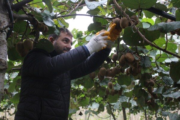 Kivi üreticisi Bilge Akın, kivinin fiyatından memnun olduğunu ifade ederek, “Beklediğimiz kadar hasat olmadı ama geçen seneye göre daha iyi. Beklediğimiz rekolte daha yüksekti. Bu yıl 13-15 ton civarı bekliyoruz. Burası 10 dönüm ama yıl geçtikçe biraz daha artacak. Kokarca bu sene çok etkilemedi bizi ama seneye etkiler diye düşünüyorum. Bu sene fındık kadar etkilenmedik. Gerekli tedbirleri aldık. İlaçlamalarımızı yaptık. Şu anda kivi fiyatı 40 TL. Fiyattan memnunuz ama girdi maliyetleri çok fazla. İşçi fiyatları da yüksek. Piyasa şartları onu gerektiriyor. Bu işe pandemide başladık. Evde kaldığımız zaman içerisinde kivi üretimi yapmaya karar verdik. Memnunuz. İyi ki kurmuşuz. Şimdi de verimini alıyoruz. Bizim için ek bir gelir oldu. Bu bölgede bir numaralı tarımsal ürün" ifadelerini kullandı.