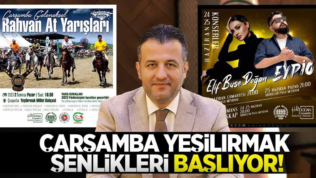 Çarşamba Belediyesi, 24-25 Haziran tarihlerinde gerçekleştireceği Geleneksel Yeşilırmak Şenlikleri ile Elif Buse Doğan, Eypio konseri ve Onur Paskap’ın Dj performansı ile vatandaşlarla buluşmaya hazırlanıyor. Şenlikler kapsamında 2 Temmuz’da Rahvan At Yarışları heyecanı da Çarşamba’da yaşanacak. Yeşilırmak Şenlikleri ile Çarşamba’da festival rüzgarı esmeye devam ediyor.