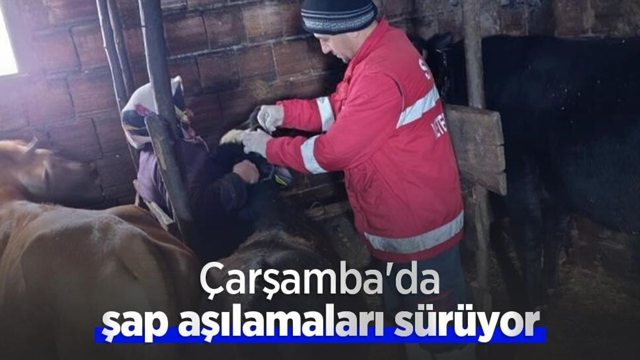 Çarşamba ilçesinde büyükbaş hayvanlara bulaşan ve öldürücü olan şap hastalığına karşı aşılama çalışmaları devam ediyor. Çarşamba Köroğlu Mahallesi'nde Çarşamba İlçe Tarım ve Orman Müdürlüğü tarafından gerçekleştirilen büyükbaş hayvan aşılama çalışmalarında hayvanlara şap ve brusella aşıları yapıldı.