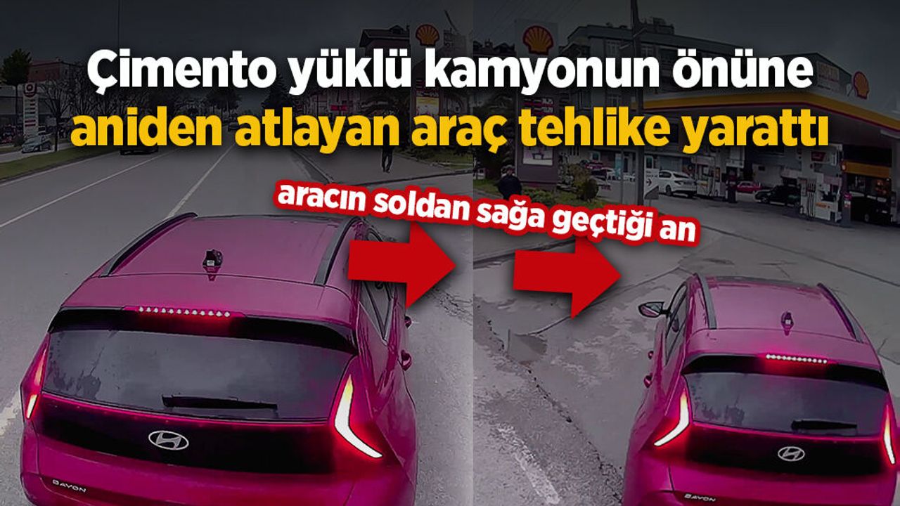 Araç içi kamera görüntüsünde, tırın manevra kabiliyetinin kısıtlı olmasına rağmen sürücünün dikkati sayesinde büyük bir kazanın önlendiği gözler önüne serildi.