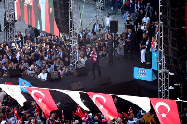 Kahramanmaraş merkezli yaşanan depremlerden etkilenen vatandaşlara yapacakları çalışmalardan bahseden İmamoğlu, “2023 çok vahim başladı. Deprem bölgesinde 10 binlerce canımızı yitirdik. Oradaki 14 milyon insanımızı Millet İttifakı hükümetinde milletçe ayağa kaldıracağız. Hepimiz biriz. Hiç kimse geride kalmayacak. Türk milleti bunu başaracak güçtedir. Milletin hükümetinde bu topraklarda doğan her çocuk eşit ve adil fırsatlarda yaşayacaklar. Bunu başarmak zorundayız. Önümüzde 14 Mayıs’a doğru gidiyoruz. En büyük yatırımı eğitime yapacağız. Aklıma esti üniversiteleri kapatın, rektörü atayın, müfredatı değiştirin gibi uygulamaları kenara koyup, geleceğe yürüyeceğiz. 100. yılında cumhuriyetimizi ayağa kaldıracağız. Türkiye’nin gereksinimlerine uygun beceriyi tüm gençler elde edecek. Gençleri dünyadaki tüm akranlarıyla rekabet edebilir hale getireceğiz” diye konuştu.