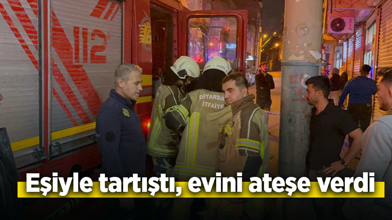 Edinilen bilgilere göre, merkez Bağlar ilçesi 5 Nisan Mahallesi Girne Caddesi üzerinde bulunan 5 katlı apartmanın son katında ikamet eden çift arasında tartışma çıktı. Eşine sinirlenen şahıs, daha sonra evini ateşe verdi. İhbar üzerine olay yerine itfaiye, sağlık ve polis ekipleri sevk edildi. Eşinin yaktığı ateşi söndürmeye çalışan kadının ise eli yandı. Sağlık ekipleri tarafından olay yerinde ilk müdahalesi yapılan kadın, hastaneye sevk edildi. Yangın, itfaiye erlerinin müdahalesiyle söndürüldü.