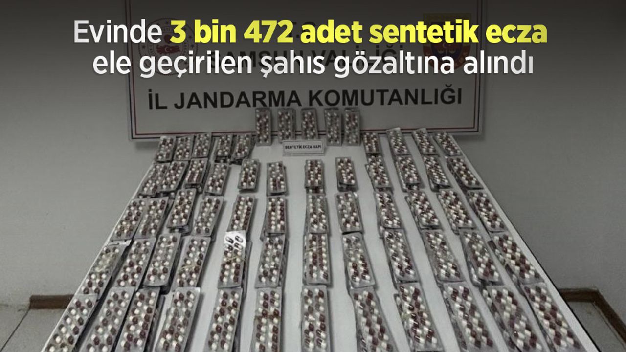Samsun İl Jandarma Komutanlığı'na bağlı KOM, Narkotik, İstihbarat ve JASAT ekipleriyle Tekkeköy İlçe Jandarma Komutanlığı ekiplerince şüphelinin ikametinde arama gerçekleştirildi. Yapılan aramada 3 bin 472 adet sentetik ecza ele geçirildi.