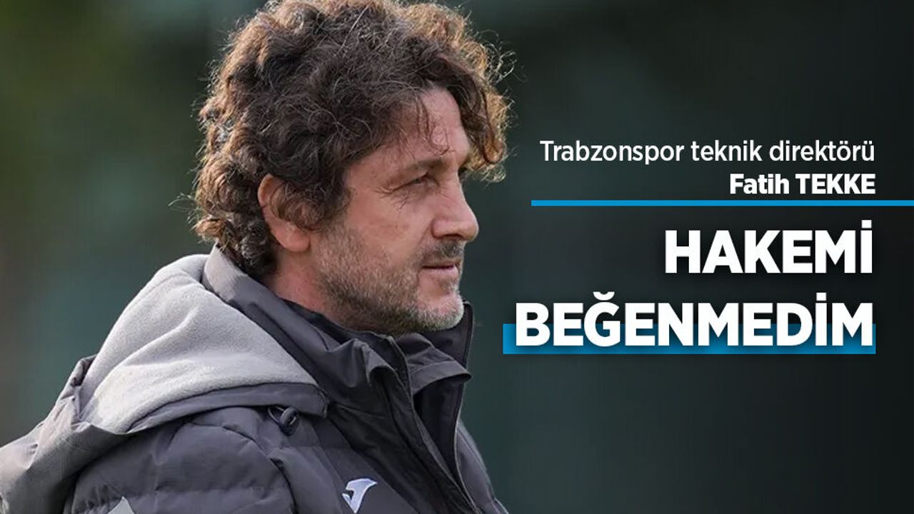 Kazanmalarına rağmen hakem Atilla Karaoğlan’ın maç yönetimini beğenmediğini ifade eden Tekke, "Hakemler Türkiye’de hep eleştiri konusu oluyor. Ben bugün çok net söyleyeyim. Hakemi yine beğenmedim. Kırmızı kart pozisyonu hiç görmedim. Biz Trabzonspor olarak top bizdeyken oynamaya çalışan bir takımız. Bugün ilk yarıda çok iyi oynayamadık. Direkt kaleye gideceğimiz bir iki pozisyon vardı ve bunlara çalışmıştık. Bunun fazla olması lazımdı. Orada oyuncuların anlık tercihlerinden dolayı bizim de uyarılarımız oluyor ama bazen o duyguyu dışarıdan bir sopa varmış gibi oyunu kontrol etmeniz mümkün değil. Oyuncuların orada duyguları da var. Yeni denemiş bir şeyin hemen tekrarında yüzde 100’ünü bulmanız da kolay değil. Dolayısıyla bu bir süreç ama oyuncularım geldiğim günden bu yana söylediğim şeylerin tersini yapmadı. Saha içerisinde biz ne söylediysek yapmaya çalıştı. Hepsinin ayaklarına, gönüllerine sağlık. Hepsi bizim ne diyorsak onu yapıyorlar. Dolayısıyla burada hata varsa bu bana ve teknik ekibe ait" diye konuştu.