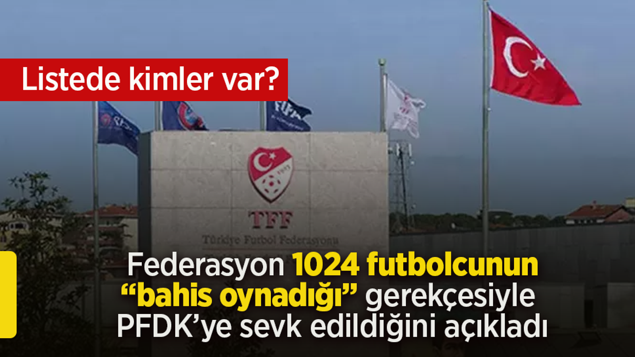 Türkiye Futbol Federasyonu'nca profesyonel liglere yönelik olarak yürütülen bahis soruşturması kapsamında bahis oynadığı tespit edilen 1024 futbolcunun Futbol Disiplin Talimatı'nın 57. maddesi uyarınca 10.11.2025 tarihinden itibaren tedbirli olarak PFDK'ya sevk edilmesine karar verilmiştir.