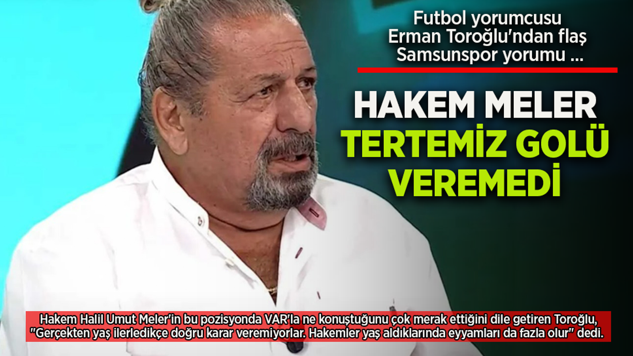 Futbol yorumcusu eski hakem Erman Toroğlu, EKOL TV'de Samsunspor'un geçerli sayılmayan golüyle ilgili açıklamalarda bulundu. Her şeyden önce tertemiz golün hakem Halil Umut Meler tarafından art niyetli olarak verilmediğini söyleyen Toroğlu, "Topa vurulduğu an kalecinin arkasında ki oyuncu Holse'nin oyuna müdahalesi, kendine avantaj sağlama durumu, kalecinin görüş alanını engelleme gibi bir durumu kesinlikle yok" dedi.