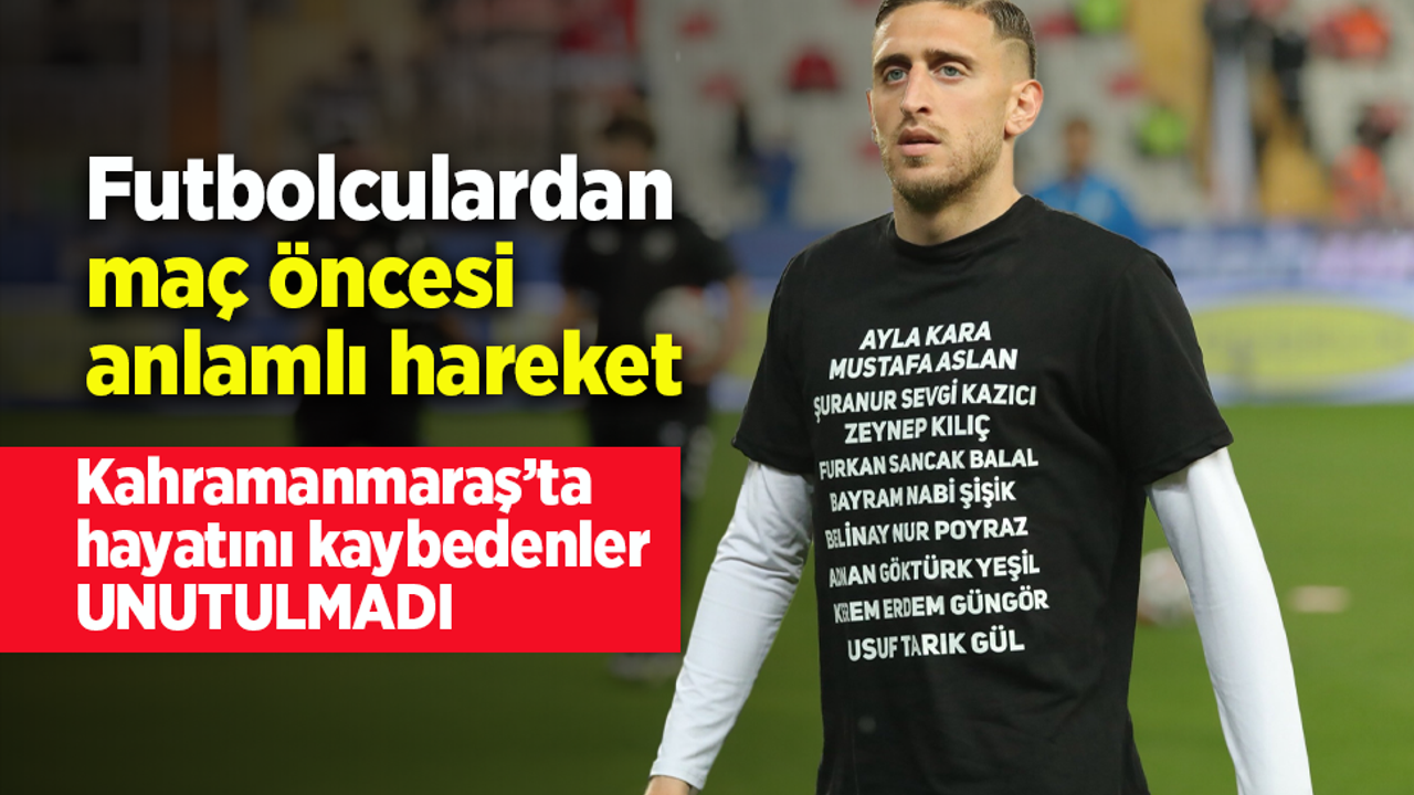 Maç öncesi gerçekleştirilen bu anlamlı hareket, tribünlerde duygusal anların yaşanmasına neden oldu. Futbolcuların giydiği tişörtlerde, Kahramanmaraş’ta yaşanan acı olayda hayatını kaybeden vatandaşların isimleri yer aldı.