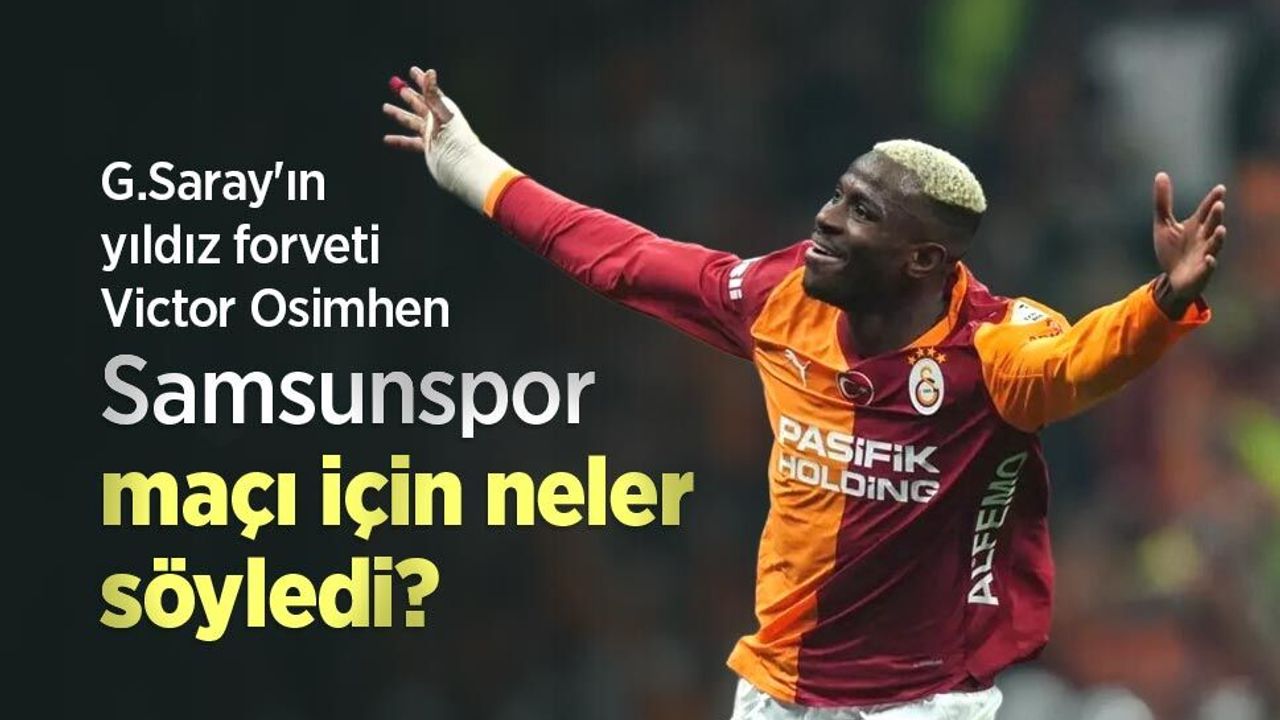 Samsunspor Haber - Galatasaray’ın dünyaca ünlü yıldızı Victor Osimhen, ligde gelecek hafta karşı karşıya gelecekleri Samsunspor maçı öncesi iddialı ve temkinli açıklamalarda bulundu. Karadeniz ekibinin bu sezonki performansına dikkat çeken Nijeryalı golcü, taraftara galibiyet sözü verdi. Samsunspor’un ligdeki dirençli yapısına vurgu yapan Osimhen, rakibe saygı duyduklarını belirterek şu ifadeleri kullandı:
