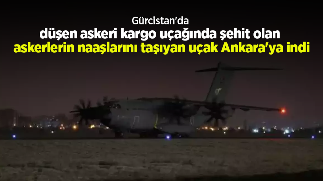 Azerbaycan'dan Ankara'ya dönmek üzere havalanan Türk Silahlı Kuvvetlerine ait C-130 tipi kargo uçağının Gürcistan sınırında düşmesi sonucu 20 asker şehit olmuştu. Arama-kurtarma çalışmalarının ardından şehitlerin naaşları Türkiye'ye getirilmek üzere bu akşam Türk Silahlı Kuvvetlerine ait A-400M uçağı ile Gürcistan'dan havalandı. 20 şehidin naaşlarını taşıyan uçak Ankara'da bulunan Mürted Havalimanı'na iniş yaptı. Şehitlerin naaşlarının Adli Tıp Kurumuna götürülmesi bekleniyor.