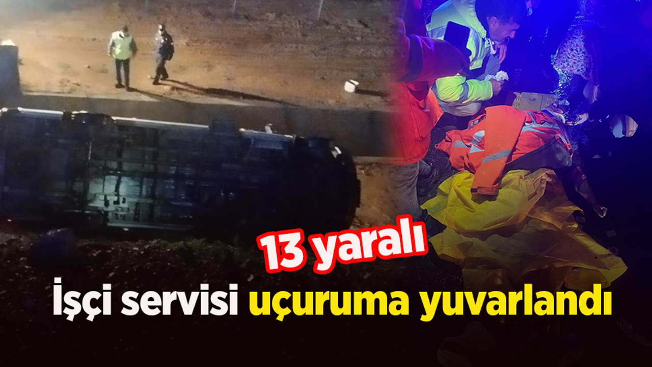 Kaza, Erdemli ilçesi Tömük Mahallesi’nde otoyol çalışmasının sürdüğü şantiye yolunda meydana geldi. Alınan bilgiye göre, Arif A. idaresindeki 46 K 5044 plakalı işçi servis minibüsü, yağışlı havada sürücüsünün direksiyon hakimiyetini kaybetmesi sonucu yoldan çıkarak yaklaşık 50 metre yükseklikten uçuruma yuvarlandı. Kazayı fark edenler durumu 112 Acil Komuta Merkezi’ne bildirdi. Merkez bölgeye sağlık, jandarma ve itfaiye ekiplerini sevk etti. Mersin Büyükşehir Belediyesi İtfaiye Dairesi Başkanlığı’na bağlı ekipler kısa sürede bölgeye gelerek yan yatan araç içerisinde bulunan yaralıları kurtardı. Yaralılar, arazinin engebeli yapısı ve yağışlı hava şartları nedeniyle iş makinelerinin de desteğiyle uçurumdan yukarı taşınarak ambulanslara ulaştırıldı. Kazada sürücüyle birlikte yaralanan 1'i ağır 13 kişi ambulanslarla hastanelere sevk edildi.