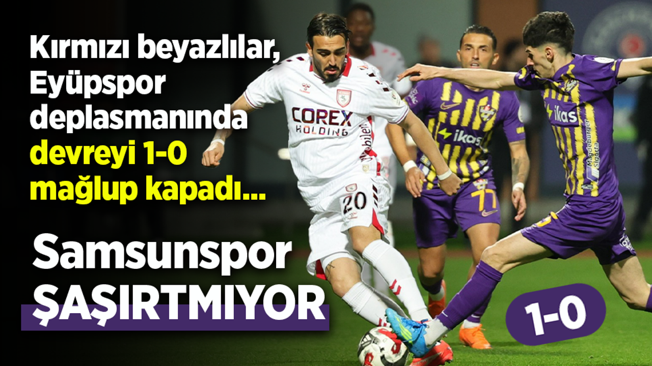 Samsunspor Haber - Trendyol Süper Lig'in kritik randevusunda Samsunspor, kümede kalmak için son kozlarını oynayan Eyüpspor ile deplasmanda karşı karşıya geldi. Karşılaşmanın ilk yarısında oyunun kontrolünü elinde bulunduran ve topa daha fazla hakim olan taraf konuk ekip Samsunspor oldu. Kırmızı beyazlılar, orta sahada kurduğu üstünlükle rakip kalede baskı kurmaya çalışsa da Eyüpspor savunmasını aşmakta zorlandı. Kırmızı beyazlı ekibin üstünlüğüne rağmen her iki takım da rakip kalede net gol pozisyonu üretmekte başarılı olamazken ev sahibi takım son dakikada kazandığı penaltı atışını gole çevirdi ve soyunma odasına 1-0 örde girdi.