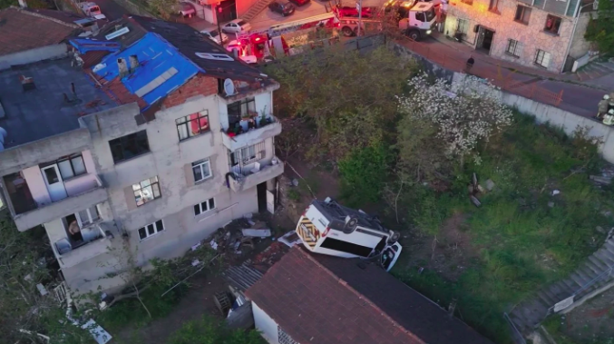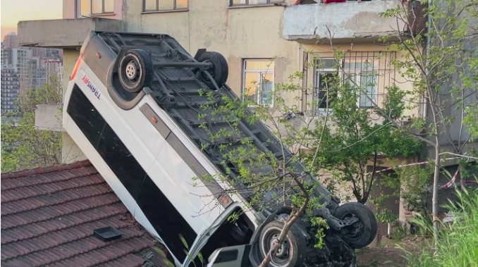 Ev sahibi İsmail Koç, yaşananları “Minibüs duvara çarpıp çatıya düştü. Evde kimse yoktu, büyük bir şans oldu” sözleriyle anlattı.