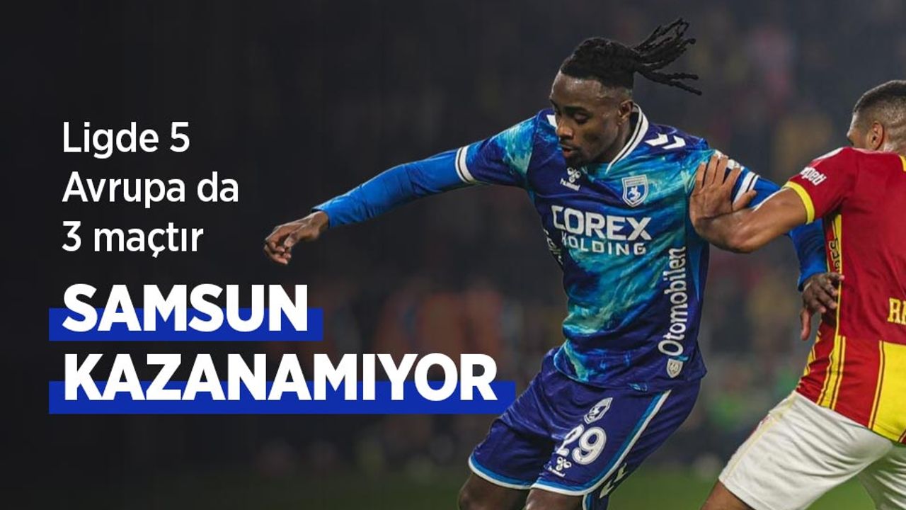 Samsunspor Haber - Samsunspor, geçtiğimiz sezon Trendyol Süper Lig'in ilk devresinde 33 puan toplamış ve sezonu da 3. sırada tamamlayarak Avrupa kupalarında yer almıştı. Bu sezon ise ilk yarıda 17 karşılaşmada 6 galibiyet, 7 beraberlik ve 4 mağlubiyet alan Samsun ekibi, 25 puan elde ederek geçen sezonun 8 puan gerisinde kaldı. 43 gün içinde Süper Lig ve Konferans Ligi'nde çıktığı son 8 müsabakada galibiyet yüzü göremeyen Karadeniz temsilcisi, bu süreçte ligde Beşiktaş, Alanyaspor, Galatasaray, Başakşehir FK ve Göztepe, Avrupa’da ise Breidablik, AEK Atina ve Mainz 05 ile karşı karşıya geldi.
