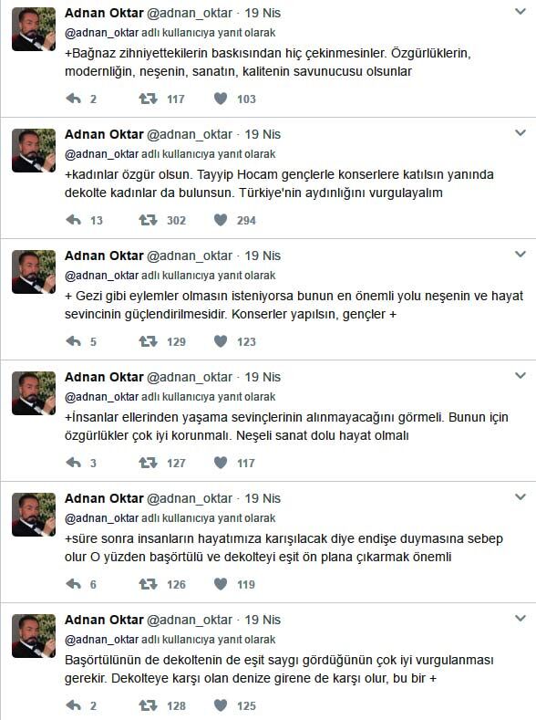Adnan Oktar Twitter hesabı üzerinden yaptığı paylaşımlarda Cumhurbaşkanı Recep Tayyip Erdoğan'a da ilginç tavsiyelerde blundu. Oktar, yapmış olduğu paylaşımlarda şu ifadelere yer verdi: