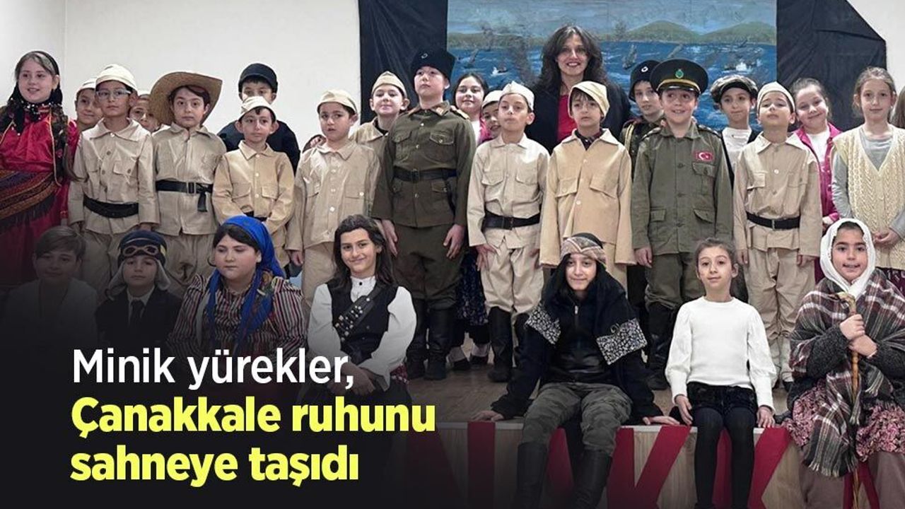 Milli Eğitim Vakfı İlkokulu 3-A sınıfı öğrencileri tarafından hazırlanan Çanakkale temalı gösteri, izleyenlere gurur ve duygu dolu anlar yaşattı. Büyük bir özveriyle hazırlanan programda öğrenciler, Milli Mücadele'nin unutulmaz kahramanlarını sahnede başarıyla canlandırdı. Sınıf öğretmeni Altınay Kürek rehberliğinde hazırlanan gösteride; Şerife Bacı, Kara Fatma, Nene Hatun, Seyit Onbaşı, Sabiha Gökçen, Nezahat Onbaşı ve Kınalı Hasan gibi Türk tarihine damga vuran kahramanlar, minik öğrencilerin başarılı performanslarıyla canlandırıldı. Sahnedeki anlatım ve canlandırmalar, salonda bulunan izleyicilere hem duygusal hem de gurur verici anlar yaşattı.