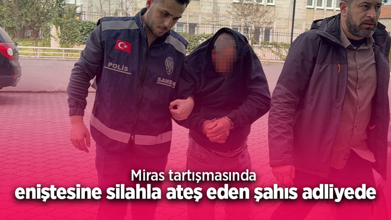 Olay, İlkadım ilçesi Reşadiye Mahallesi'nde dün akşam meydana geldi. Edinilen bilgiye göre, Ş.K. (54), bayramlaşmak için evine gittiği eniştesi Ö.U. (51) ile miras meselesi nedeniyle tartıştı. Tartışmanın büyümesi üzerine Ş.K. evden ayrılıp bir süre sonra geri geldi. Evde misafir olması üzerine Ö.U., tartışma çıkaran kayınbiraderi Ş.K.'yi eve almadı. Çıkan kavgada Ş.K., eniştesi Ö.U.'ya tabancayla ateş açtı. Olayda yaralanan olmazken Ş.K. olayda kullandığı tabancayla birlikte polis tarafından gözaltına alındı. Polisteki işlemleri tamamlanan Ş.K., İlkadım İlçe Emniyet Müdürlüğü Suç Önleme ve Soruşturma Büro Amirliği ekipleri tarafından bugün Samsun Adliyesi'ne sevk edildi.
