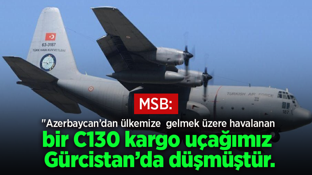 Milli Savunma Bakanlığı (MSB), Azerbaycan'dan Türkiye'ye gelmek üzere havalanan ve Gürcistan'da düşen askeri kargo uçağında uçuş ekibi dahil 20 personelin bulunduğunu açıkladı.