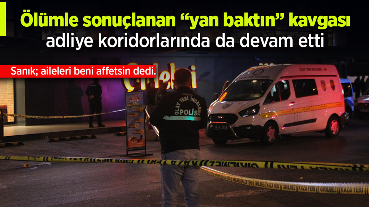 Kayseri'de Osman Kavuncu Bulvarı'nda bulunan bir iş yerine yemek yemeye giden H.K. (20) ile K.D.'nin hesap ödemek için restoran dışında bekledikleri sırada iddiaya göre caddeden geçen 6 kişilik bir grup ile 'yan bakma' nedeniyle kavga çıktı. Kavgada bıçaklanan H.K., olayda hayatını kaybederken, K.D. ise yaralandı. Meydana gelen olayla ilgili 1'i tutuklu 6 sanığın yargılanmasına Kayseri 8. Ağır Ceza Mahkemesi'nde devam edildi. Duruşmaya tutuklu sanık A.E.Ü. katılırken, tutuksuz sanıklar S.E.Ç., A.T., S.E., Ö.F.K. ve N.B.Y.'nin ise avukatları katıldı.