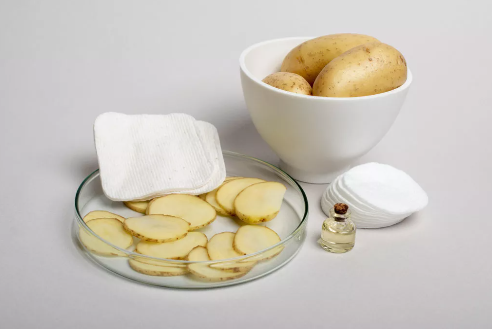 Soğuk yeşil çaya batırdığınız patates dilimlerini göz kapaklarınıza sürün. Dr. Anthony iddialı konuştu: "Yeşil çaydan gelen kafein ve soğuk, cildinizi geçici olarak sıkılaştıracaktır. Ve patateslerden elde edilen nişasta da kademeli bir aydınlatma etkisi yaratacaktır."