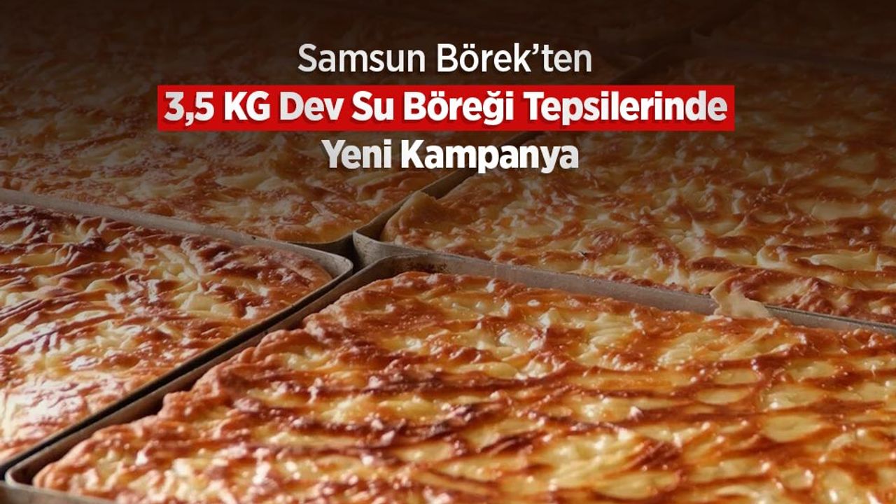 Samsun Börek, 3,5 KG dev su böreği tepsilerinde yeni bir kampanya başlattı. Günlük olarak hazırlanan el açması börekler, fırından çıkışının ardından sıcak servisle müşterilere ulaştırılıyor.
