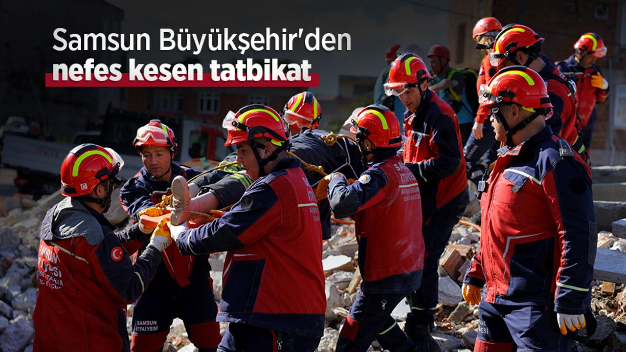 Senaryo gereği meydana gelen 6.4 şiddetindeki deprem sonrası Canik ilçesi Soğuksu Mahallesinde çöken bir garajda mahsur kalanlar kurtarıldı. Yine senaryo gereği deprem sırasında 5 katlı bir binanın 2’nci katında çıkan yangına müdahale edildi. Dumandan etkilenen 2’si çocuk 1 kişi de kurtarılarak ambulansla hastaneye götürüldü.