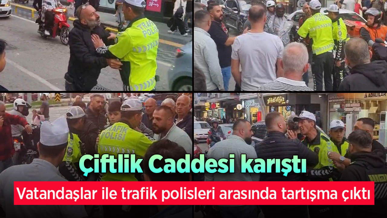 Olay, saat 17.30 sıralarında Çiftlik Caddesi’ni 56’lar Caddesi’ne bağlayan trafik ışıklarında meydana geldi. İddiaya göre, arabaların arasından geçerek ilerleyen bir motosiklet sürücüsüne trafik ekipleri tarafından ceza yazıldı. Ceza kararına itiraz eden sürücü, polislerle tartışmaya başladı.