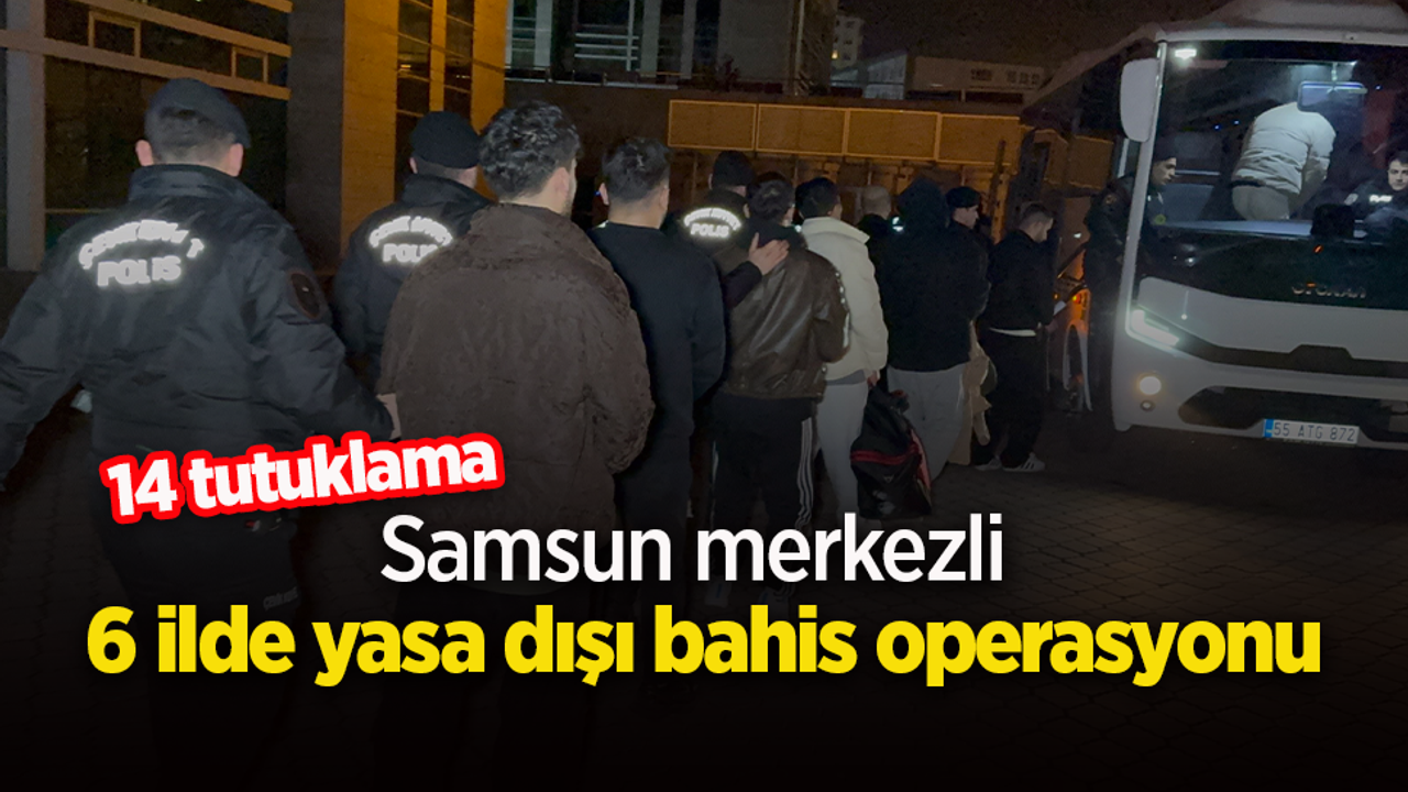 Samsun Cumhuriyet Başsavcılığı koordinesinde Samsun Emniyet Müdürlüğü Siber Suçlarla Mücadele Şube Müdürlüğü ekipleri tarafından internet üzerinden yasa dışı bahis oynattıkları, bahis hesapları topladıkları ve hesap kiraladıkları tespit edilen şüphelilere yönelik cuma sabahı eş zamanlı operasyon düzenlendi. Operasyon kapsamında İstanbul’da 6, Samsun’da 3, Ordu’da 10, Mersin’de 3, Çanakkale’de 1 ve Balıkesir’de 1 kişi olmak üzere toplam 24 kişi gözaltına alındı. Emniyetteki işlemleri tamamlanan 24 şüpheli, bugün Samsun Adliyesine sevk edildi. Savcılık ifadelerinin ardından 4 kişi adli kontrol şartıyla, 20 kişi de tutuklanmaları talebiyle nöbetçi mahkemeye sevk edildi. Nöbetçi mahkemede ifade veren Y.E., Y.E.Ç., E.G., M.N.S., M.G., A.B., B.G., S.Y., E.T., D.Ö., U.G., N.K., Y.K. ve İ.A. adlı kadın tutuklanarak Samsun T Tipi Kapalı Cezaevine gönderilirken, 10 kişi ise adli kontrol şartıyla serbest bırakıldı.