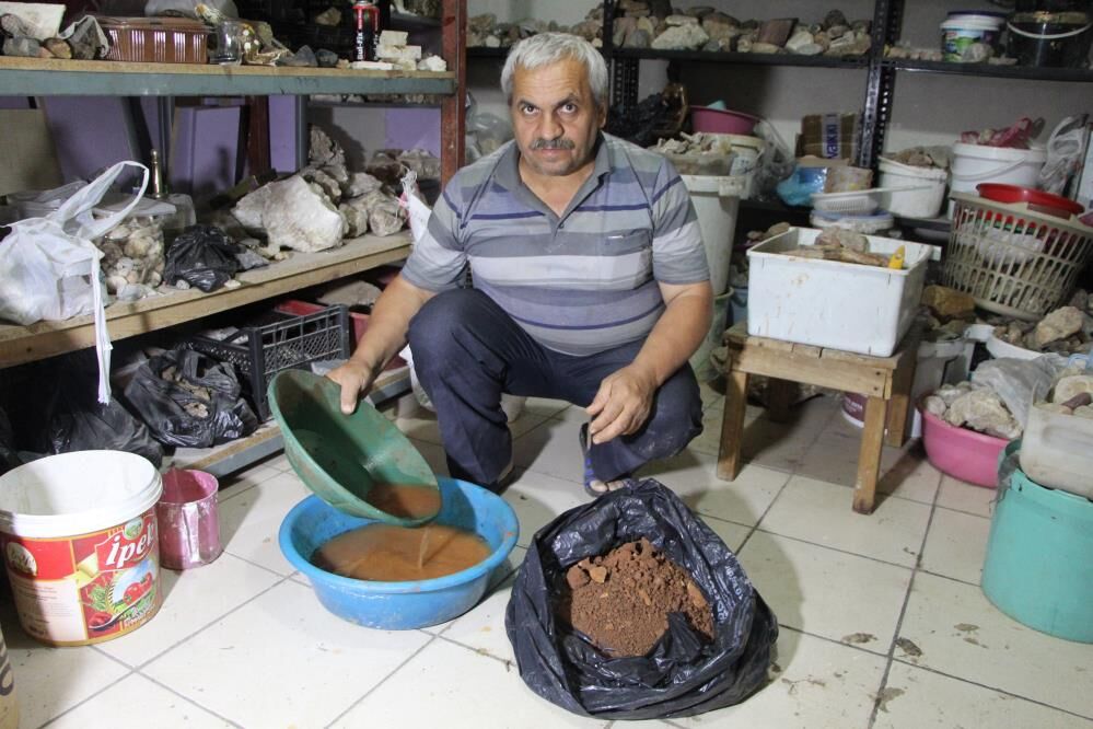Denizli’de emekli Şenol Akkuş, yıllardır evinin altında numune olarak getirilen çeşitli toprak yapılarının içindeki altın oranını belirlemek için eleme yapıyor. Suyla elekten numune toprağı eleyip içindeki madenleri bulan Akkuş, mıknatıs yardımıyla elde ettiği mikron büyüklüğündeki maden parçacıklarının içinden demir parçacıklarını alıyor. Geri kalan madenler içinden büyüteç yardımıyla altın parçacıklarını tespit eden Akkuş, numune getirilen toprağın bulunduğu alandaki altın oranını da hesaplayabiliyor.