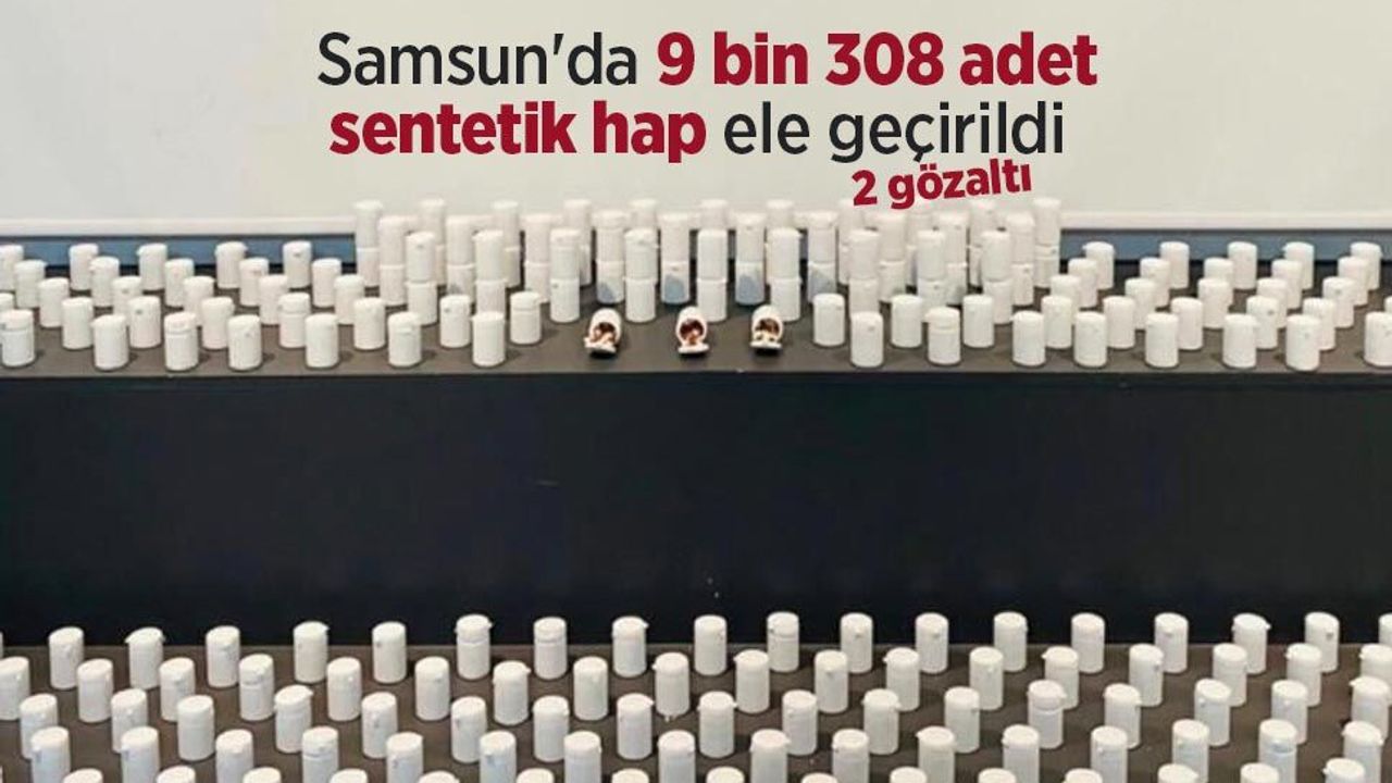 Samsun İl Emniyet Müdürlüğü Narkotik Suçlarla Mücadele Şube Müdürlüğü ekipleri tarafından uyuşturucu madde ticareti ve kullanımının önlenmesine yönelik yürütülen çalışmalar kapsamında İlkadım ilçesinde operasyon düzenlendi. Çalışmalarda 3 şüpheliye ait üst, araç ve ikametlerde arama yapıldı. Yapılan aramalarda toplam 9 bin 308 adet sentetik ecza, 1 adet ruhsatsız tabanca ve 5 adet fişek ele geçirildi. Operasyon kapsamında 2 şüpheli gözaltına alındı.