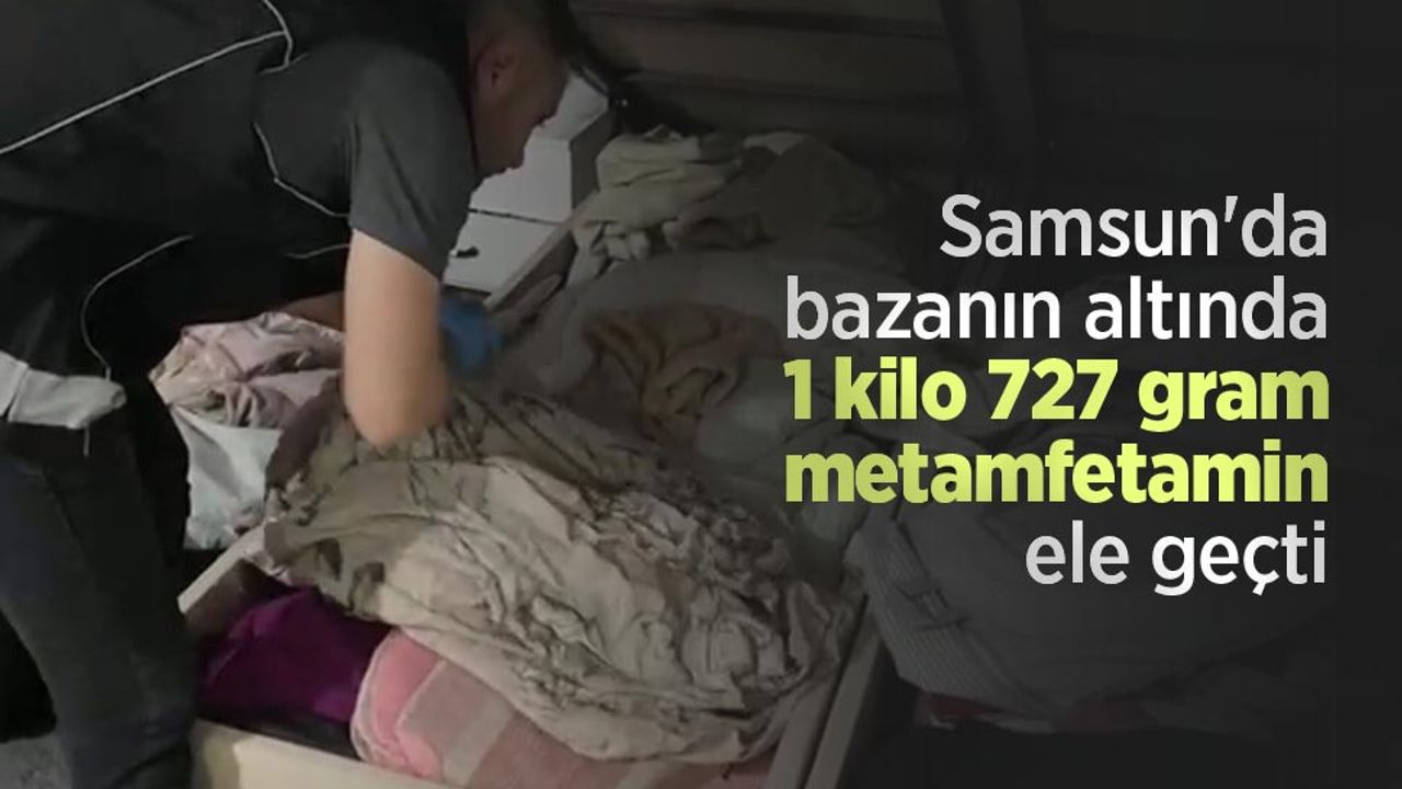 Samsun Emniyet Müdürlüğü Narkotik Suçlarla Mücadele Şube Müdürlüğü ekiplerinin yürüttüğü çalışma kapsamında O.K. (45) ve Ü.C.A. (31) isimli şahısların bulunduğu adreste yapılan aramada bazanın altındaki eşyaların arasına gizlenmiş halde 1 kilo 727 gram metamfetamin, 1 adet hassas terazi ve uyuşturucu madde ticaretinden elde edildiği değerlendirilen 100 bin lira ele geçirildi.