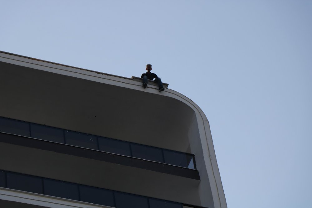 Mahmut Ekinci’yi atlamaktan vazgeçirmek için ekipler seferber olurken, aşağıda toplanan vatandaşlar ve karşı binadaki bazı kişilerin ise cep telefonlarına sarılıp canlı yayın yapma yarışı içerisine girmeleri dikkat çekti.